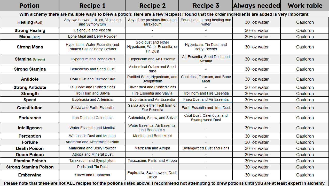 Note: ALL of the category below are in the category of ALCHEMY in the craft menu.